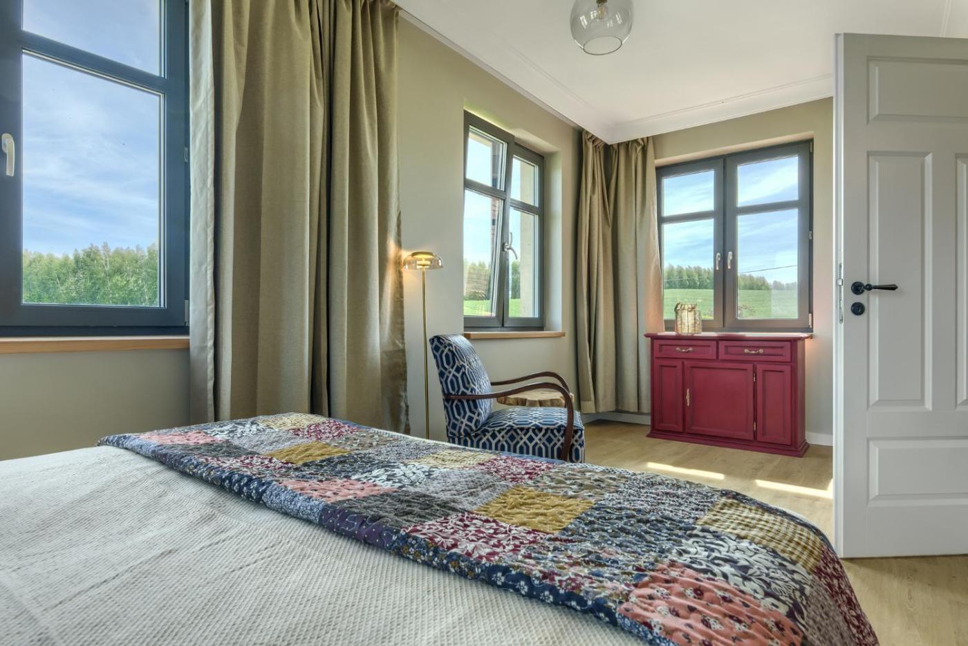 Willa. Guests will have a special experience as this villa offers a pool with a view, a sauna and a fireplace. This spacious villa comprises 1 living room, 5 separate bedrooms and 4 bathrooms with a bath and free toiletries. Guests will find a stovetop, a refrigerator, a dishwasher and kitchenware in the kitchen. The villa also provides guests with a barbecue. Featuring a terrace with lake views, this villa also provides a washing machine and a flat-screen TV with streaming services. The unit offers 7 beds. Willa - 14 osobowy. Powierzchnia pokoju ok.: 210 mkw.