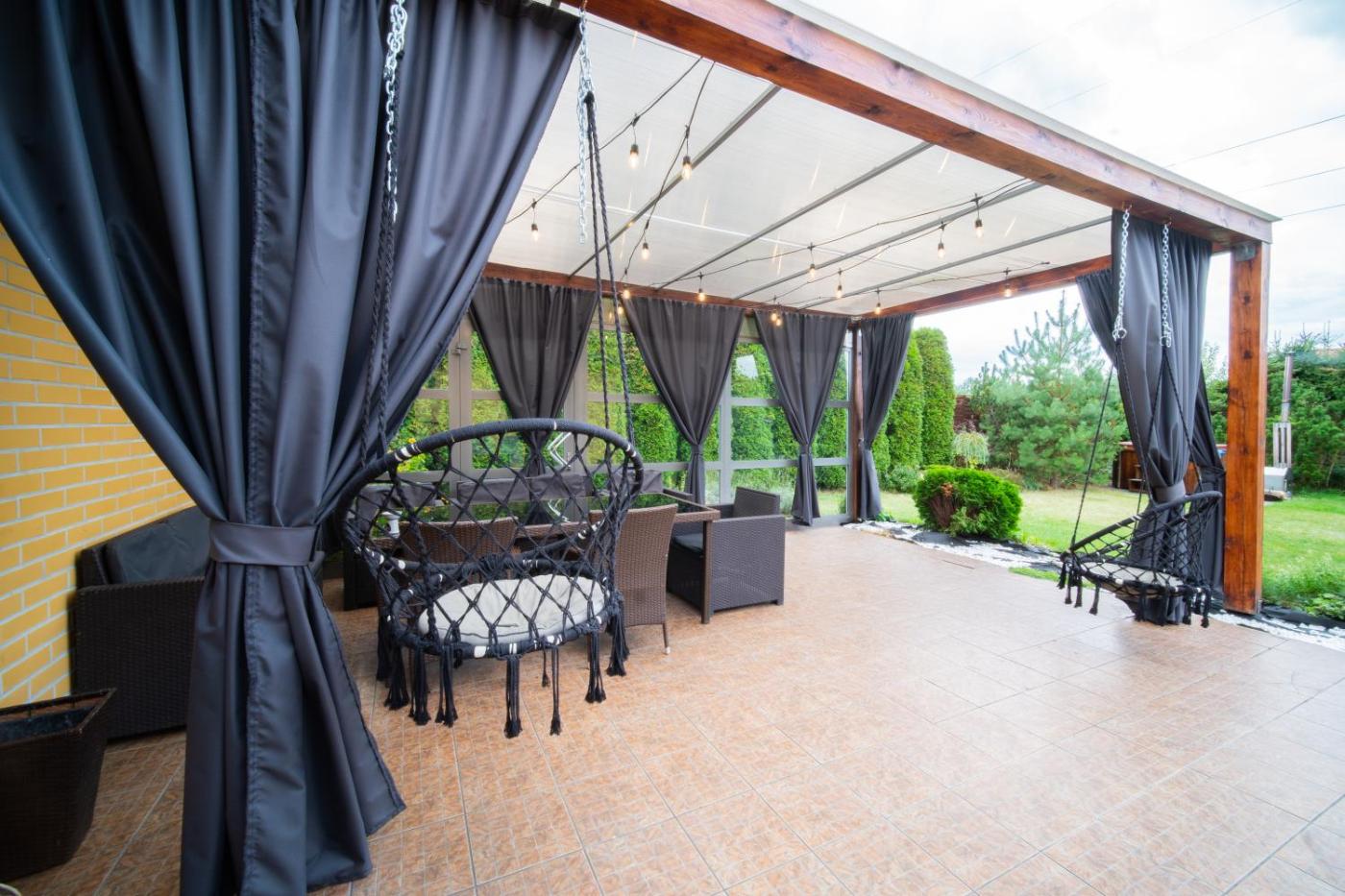 Domek z 5 sypialniami. The private pool and sauna are the standout features of this holiday home. Guests will find a stovetop, a refrigerator, a dishwasher and kitchenware in the fully equipped kitchen. The holiday home also includes a barbecue. The spacious holiday home features a washing machine, a dining area, a terrace with garden views as well as a shared bathroom boasting a bath. The unit has 8 beds. Dom wakacyjny - 12 osobowy. Powierzchnia pokoju ok.: 270 mkw.