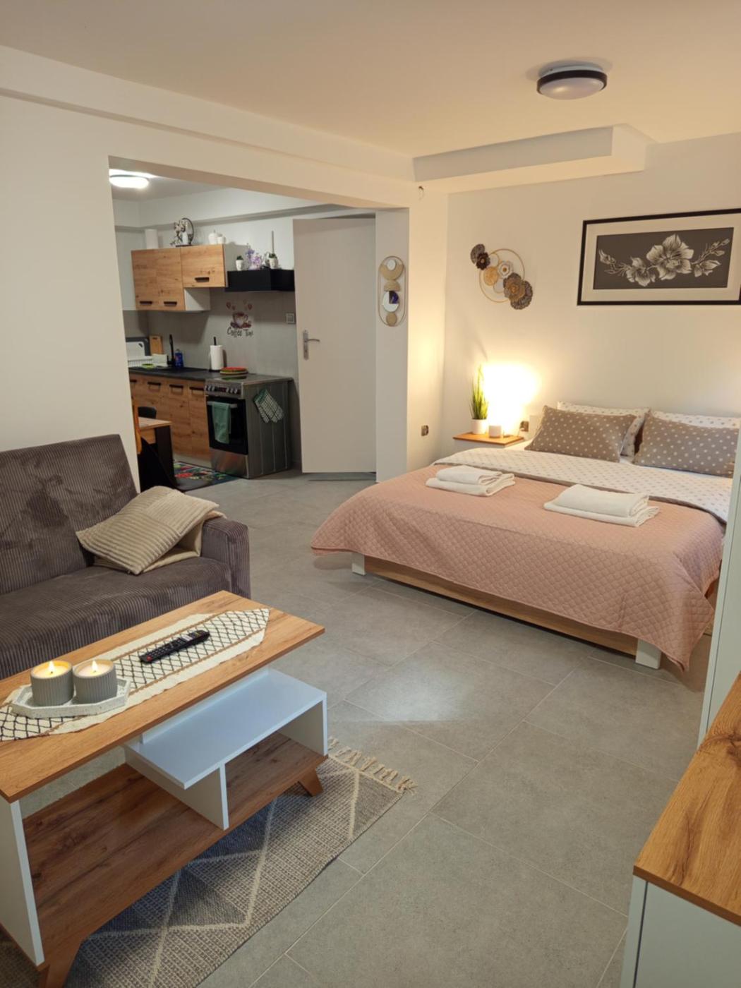 Dom z 1 sypialnią. Featuring a private entrance, this holiday home also comprises 1 separate bedroom, 1 bathroom with a shower, a kitchen and a dining area. In the well-equipped kitchen, guests will find a stovetop, a refrigerator, kitchenware and an oven. The holiday home provides a washing machine, a wardrobe, an electric kettle, heating and a flat-screen TV. The unit offers 2 beds. Dom wakacyjny - 7 osobowy. Powierzchnia pokoju ok.: 50 mkw.