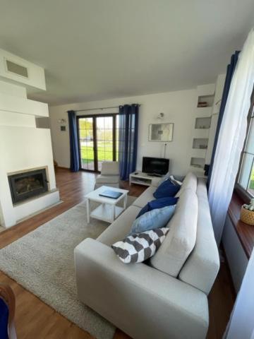 Willa z 3 sypialniami. Guests will have a special experience as this villa features a fireplace. Featuring a private entrance, this villa is comprised of 1 living room, 3 separate bedrooms and 3 bathrooms with a bath and a shower. The fully equipped kitchen features a stovetop, a refrigerator, kitchenware and an electric kettle. Boasting a terrace with garden views, this villa also offers a seating area and a flat-screen TV. The unit offers 8 beds. Willa - 8 osobowy. Powierzchnia pokoju ok.: 105 mkw.
